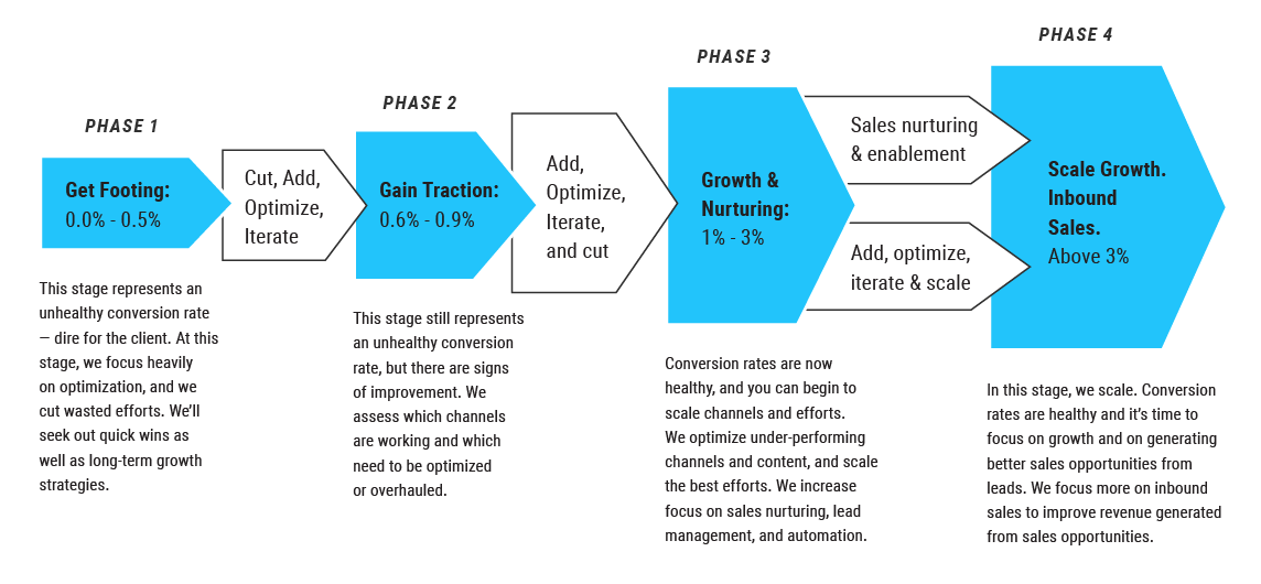 Marketing must have an impact. Our work focuses on true business metrics that scale over time, including conversion rates and qualified lead generation.